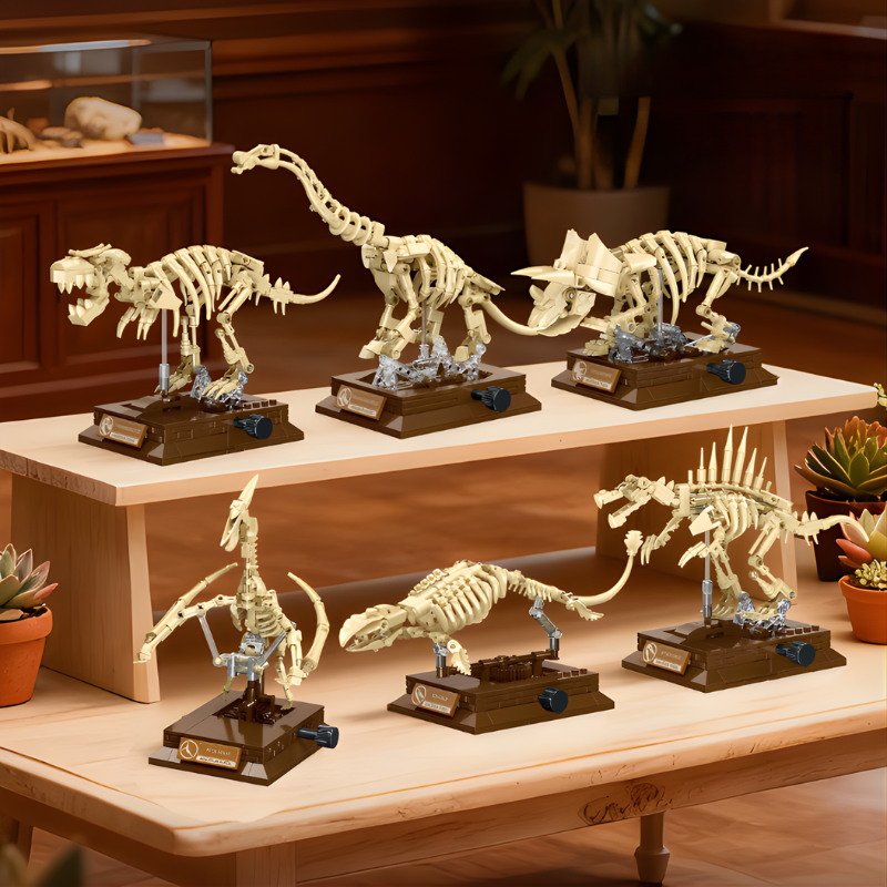 Além de um brinquedo, o fóssil montado é uma peça de decoração sofisticada. Com base em exposição e placa de identificação, ele transforma qualquer estante ou escritório em um mini museu particular. Escolha o seu modelo favorito e comece sua coleção.