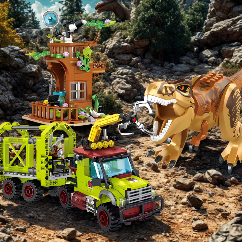 Com um Tiranossauro articulado, um caminhão de captura detalhado e uma base de pesquisa na selva, cada parte desta obra foi pensada para oferecer uma experiência de montagem imersiva, criativa e empolgante.